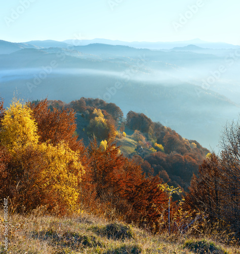 © wildman, Fototapeta premium Morning fog in autumn Carpathian.