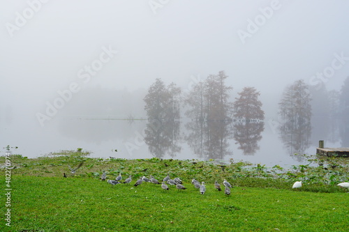 © Feng, Naklejka premium Morning Fog on Hillsborough river at Tampa, Florida
