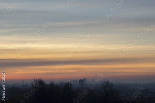 © yauhenka, Fototapeta premium Morning fog on the city skyline
