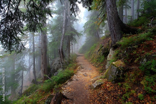 © MohdAdzmer, Obraz premium morning foggy in the woods