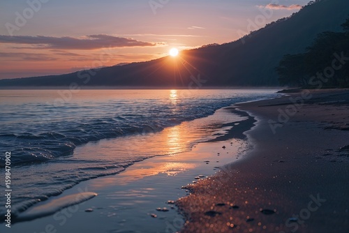 © Michael, Naklejka premium Morning Glow on the Tranquil Shoreline at Sunrise
