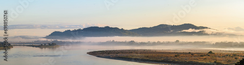© Mongkolchon, Fototapeta premium Morning Haze over the Irrawaddy River and Bala Min Htin Bridge, Myitkyina, Myanmar