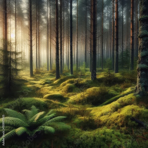 Obraz premium morning in a pine forest