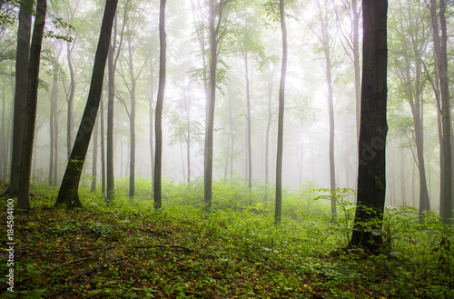 © Piotr Krzeslak, Fototapeta premium Morning in the foggy forest