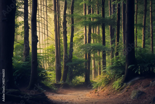 © PixelPalettePro, Obraz premium morning in the forest