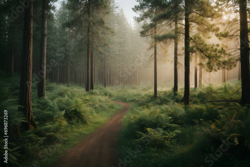 © Home, Naklejka premium morning in the forest Generative AI