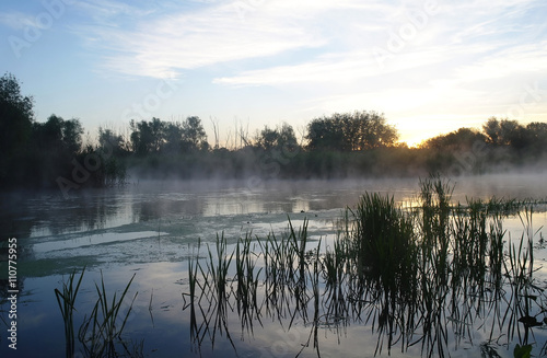 © ekulik2011, Fototapeta premium Morning landscape with fog on the river