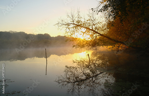 © ekulik2011, Fototapeta premium Morning landscape with fog on the river
