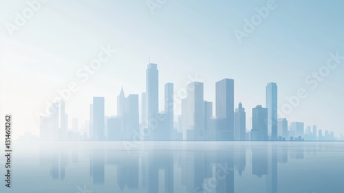 © Anat art, Naklejka premium Morning light illuminates a minimalistic urban landscape with distant skyscrapers under a wide clear sky