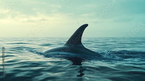 Naklejka premium Morning light reflects on dolphin fin above water high resolution picture
