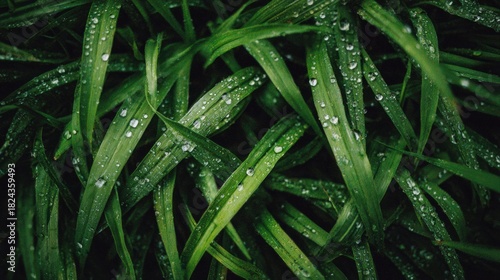 © Anat art, Fototapeta premium Morning Light Reveals Dewdrops on Green Grass in a Macro View Highlighting Natures Beauty
