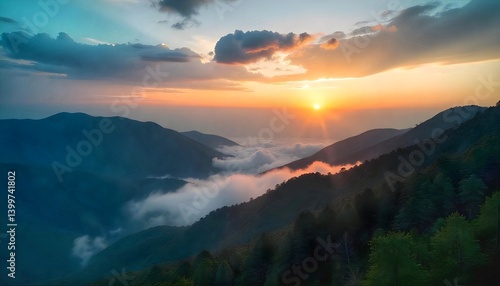 © CH & Studio, Obraz premium Morning Mist Over Phu Kradueng