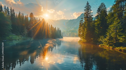 © Taisiia, Naklejka premium Morning on the lake in the sunshine