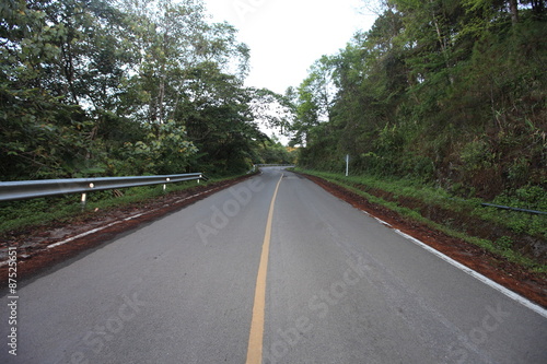 © alexzeer, Fototapeta premium Morning on the road to sunflower hill with blue sky , northern Thailand.