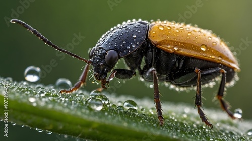 © Chamika, Fototapeta premium Morning Radiance: Cosnard's Net-Winged Beetle with Dewy Accents