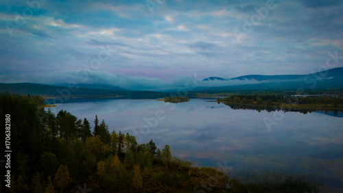 Obraz premium Morning Reflection on Äkäslompolo Lake, Lapland Finland