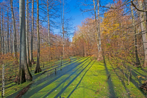 Naklejka premium Morning Shadows in a Cypress Swamp