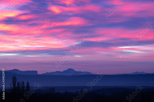 © beverli, Obraz premium Morning sky with different colors. Colorful dawn in the mountains.