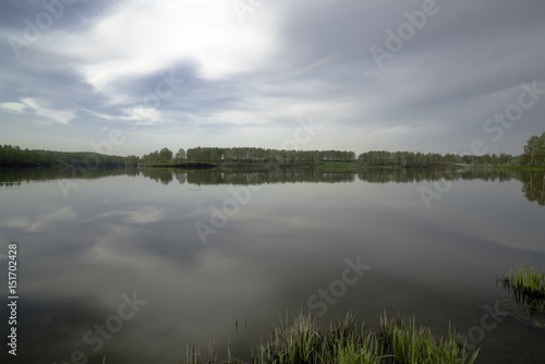 © faustasyan, Fototapeta premium Morning spring landscape on the lake.