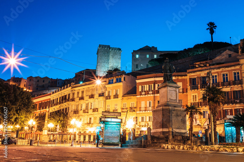 © MKavalenkau, Fototapeta premium morning streets with lanterns and cafes in Cagliari Italy