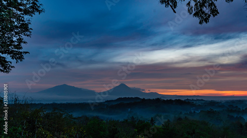 © Neelendu, Obraz premium Morning Sun at Mt Merapi