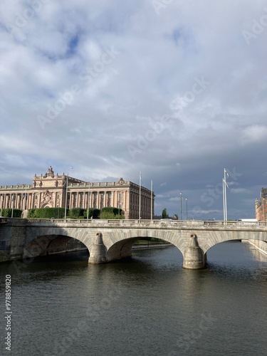 © Yaroslav Ivanovych, Naklejka premium Morning sun over the Lake Malar (Mälaren), city center, Stockholm, Sweden