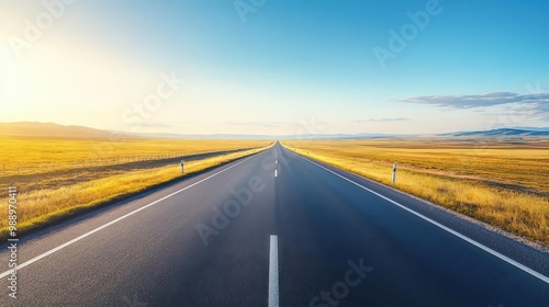 © taweesak, Naklejka premium Morning sunlight casts long shadows on a deserted highway, captured in 8K resolution with ultrarealistic detail and perfect focus