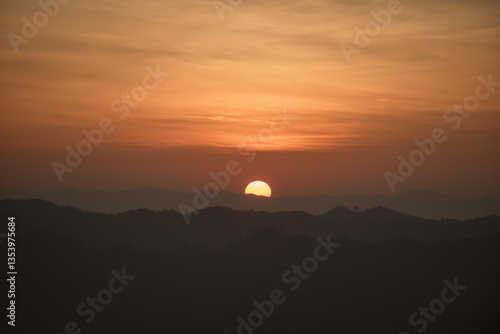 © Supat, Fototapeta premium Morning sunlight on a high mountain