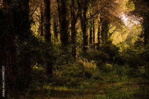 © alicobanoglu, Fototapeta premium Morning sunlight penetrating into the forest.