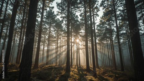 © evoband, Obraz premium Morning Sunlight Through Pine Forest