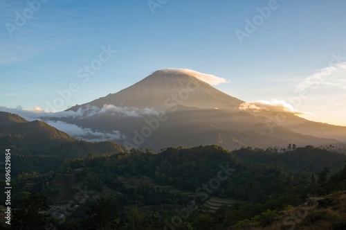 Fototapeta premium Morning sunlight warms the air around the mountain peak.