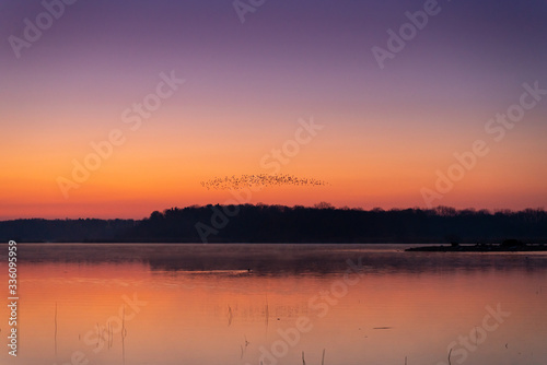 © vojta, Fototapeta premium Morning sunrise at the lake with birds