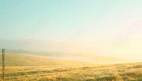 © NaparatAI, Obraz premium Morning sunrise over serene grasslands nature photography rural landscape tranquil environment wide-angle view peaceful atmosphere