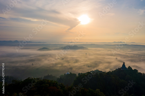 © Panwasin, Fototapeta premium Morning sunrise with cloud over mountain in Surat Thani province, Thailand