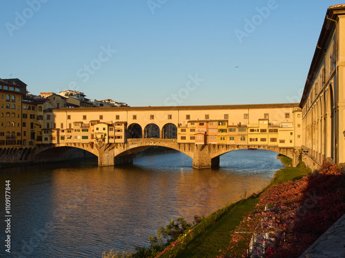Obraz premium Morning view river Arno and Ponte Vecchio in Florence, Italy