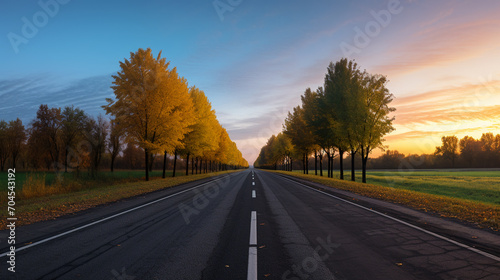 © Miry Haval, Obraz premium Morning view where are two colours on the road on two sides, AI Generative.