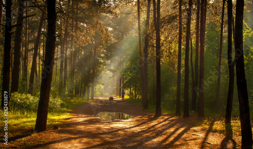 Obraz premium Morning. Walk in the woods. Sun rays.