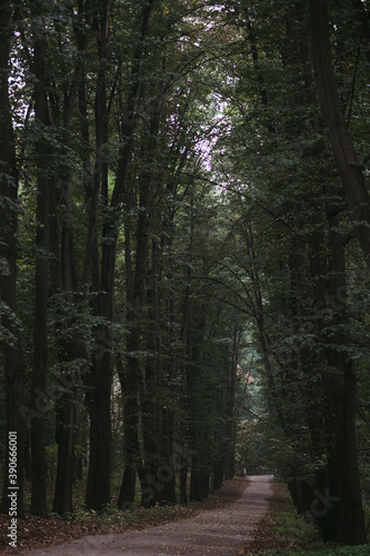 Obraz premium morning walk on an empty path in the park. High quality photo