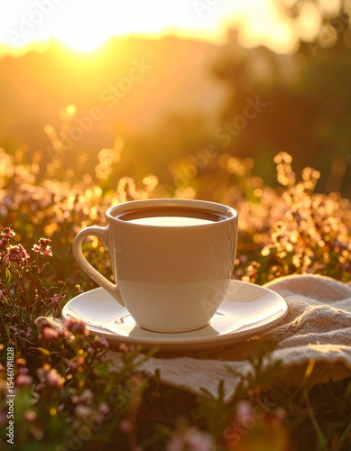 © MauveDesign, Obraz premium morning with coffee and flowers, Generated image