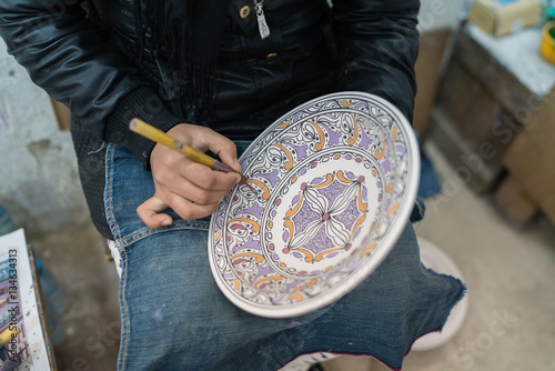 Fototapeta premium Moroccan potter at work in a pottery shop