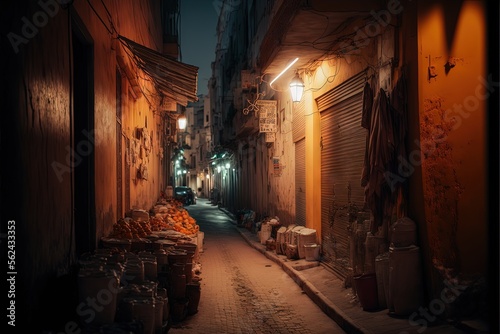 © Don G, Fototapeta premium Morocco street at night. Generative AI