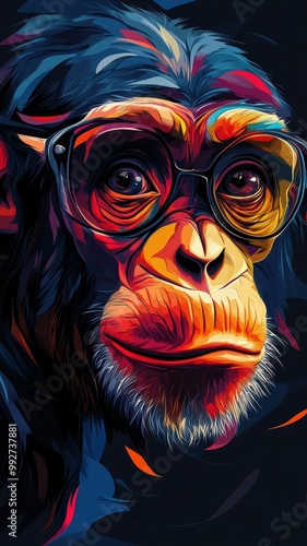 Naklejka premium Morphism style chimpanzee, abstract shapes, smooth transitions.