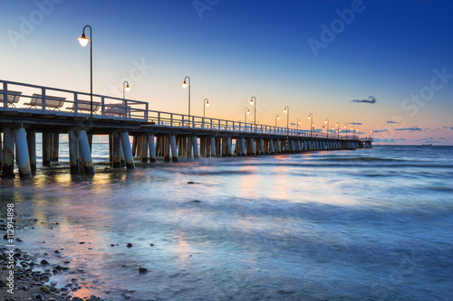 Fototapeta premium Morze Bałtyckie z molo w Gdyni Orłowie o wschodzie słońca, Polska