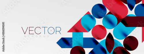 © antishock, Fototapeta premium Mosaic geometric elements. Colorful circles, round geometric shapes and lines with shadow 3d effects. Simple forms abstract background for wallpaper, banner, template or landing