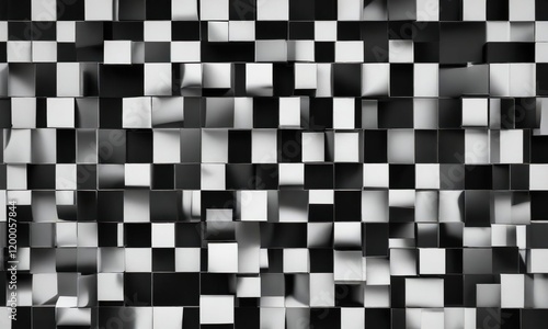 © Phetthanousack, Fototapeta premium Mosaic of black and white squares and circles, classic, minimalism