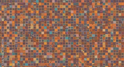 Fototapeta premium Mosaic Texture: Abstract mosaic background composed of multicolored small squares, creating a vibrant and textured surface.