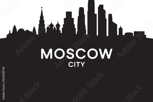 Naklejka premium Moscow City Skyline Banner – Vector Black Silhouette of Russia’s Capital on White Background