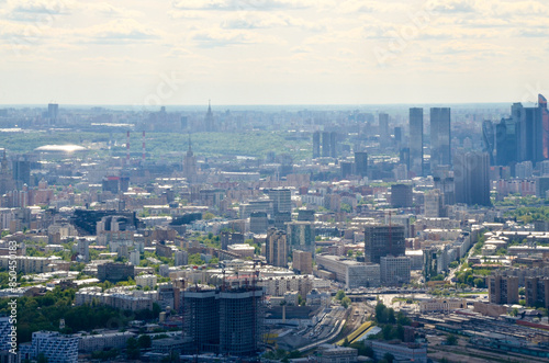 Obraz premium Moscow City skyscrapers and central districts aerial view from Ostankino TV...