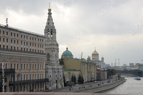 © Yuriy, Fototapeta premium Moscow embankment, Old bell tower and church roofs