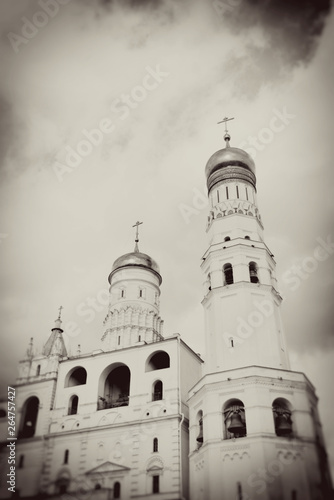 © Ekaterina Bykova, Obraz premium Moscow Kremlin architecture. Vintage style sepia photo.